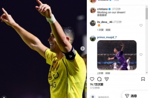 在社交媒体上,C罗晒出了自己的庆祝照,并写道:为我们的梦想而努力。