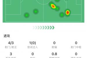 23次触球12次传球,1次关键传球,1次长传